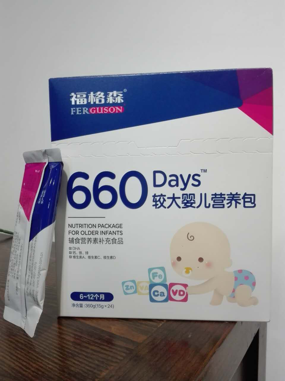 選擇合適的營養包也是一個挺頭疼的問題,經過一番挑選之后,我終于選定了福格森的黃金1000天營養包。這是一款分階段來科學設計配方的產品,我給我們家5個多月大的寶寶吃的是其中的660Days?較大嬰兒營養包,因為它就是針對這一階段的寶寶設計的,里面含有DHA,鈣,鐵,鋅和維生素等多種嬰幼兒成長所需的微量元素,正好滿足寶寶的營養需求。而且它還添加了水溶性膳食纖維,能促進有益菌生長繁殖,增強寶寶的胃腸活力。我家寶寶吃這個營養包快3個星期了,每天都固定時間排毒拉便便,沒有試過便秘了,而且他對營養的吸收也快了很多,才十來天又胖了些。